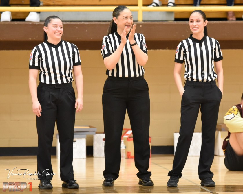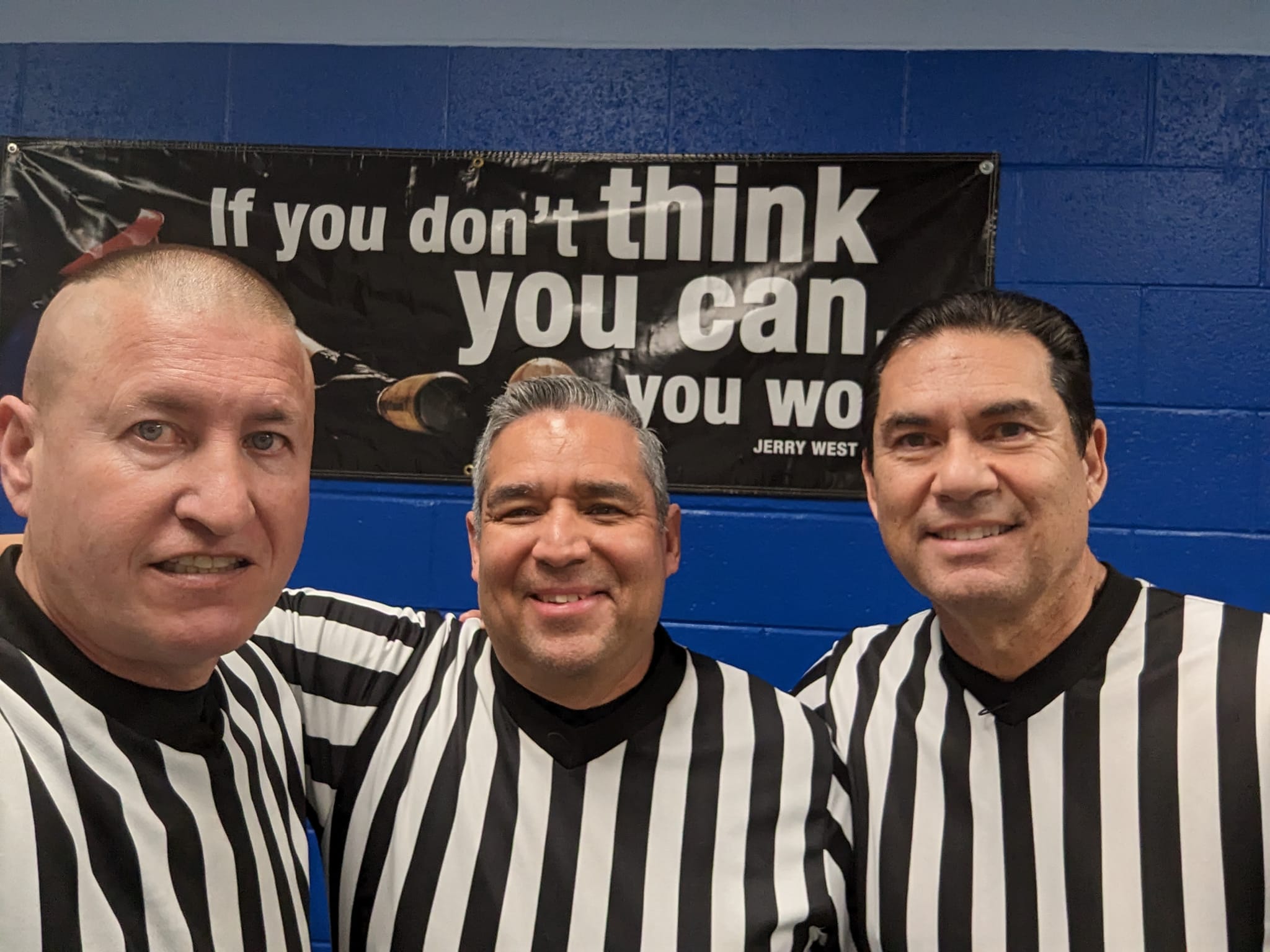Christine Ibanez, a third-year official (left) officiated her first playoff game on Friday with Armando Romero and Fred Morales. Friday